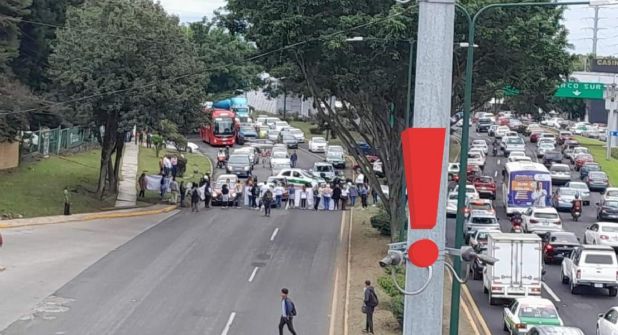 Manifestantes liberan la circulación sobre la avenida Lázaro Cárdenas, a la altura de la SEV, con dirección a Banderilla.