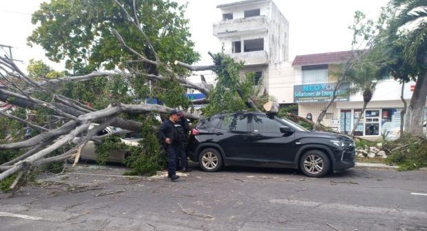 VERACRUZ, VER. - Dos autos que estaban estacionados a las afueras de un restaurante de la avenida Cristóbal Colón, en el fraccionamiento Reforma de la ciudad de Veracruz, resultaron con pérdidas materiales luego de que las rachas de viento derribaran un árbol y una palmera sobre ellos.
