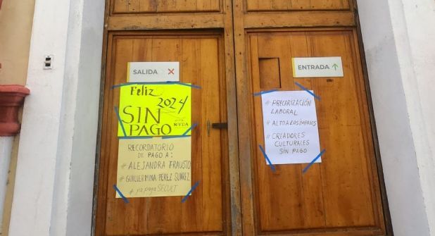 Los artistas colocaron carteles exigiendo su pago en las puertas del Instituto Veracruzanos de la Cultura (IVEC) para hacer el reclamo a nivel federal, también pidieron un trato digno, respeto y justicia laborales.