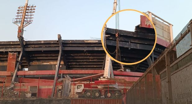 BOCA DEL RÍO, VER.- Un obrero lesionado fue el saldo de un accidente por un derrumbe en los trabajos de remodelación del estadio Luis "Pirata" Fuente durante la madrugada de este este miércoles 8 de febrero, cuando parte de la estructura superior del inmueble se vino abajo cuando se realizaba la demolición.