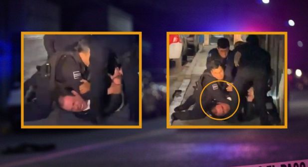 Una de las personas que grabó hace referencia a uno de los policías como “Galleta”, ““Galleta”, no le pegues, güey”, dice, mientras el hombre detenido continúa sometido en el piso forcejeando y gritando un par de palabras indescifrables.
