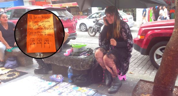 Con tres cartulinas reprochan: “Los ladrones no piden permiso para robar, pero ¿los trabajadores si hemos de pedir permiso para trabajar?; En un trabajo real me han explotado, acosado sexualmente, mal pagado y discriminado. Ahora quiero emprender y el gobierno me pone trabas. Solo quiero una vida digna o de mínimo para pagar mi renta”; Al que no trabaja lo llaman huevón; a los que sí, nos llaman revoltosos”.