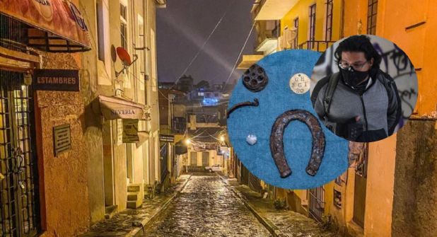 En su segunda exploración a las bóvedas situadas debajo del centro de salud Dr. Gastón Melo, Herrera y su compañero Dorian descubrieron una antigua herradura de caballo incrustada entre las piedras de la calzada del siglo XVIII que conforma la red de túneles.