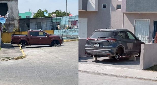En fotografías difundidas por el reportero Saúl Estévez, se ven a tres vehículos recargados sobre blocks, luego de que fueron retiradas sus llantas; los hechos fueron confirmados por los mismos vecinos de Lagos de Puente Moreno, ubicado en el municipio de Medellín de Bravo, en la zona conurbada de Veracruz-Boca del Río.
