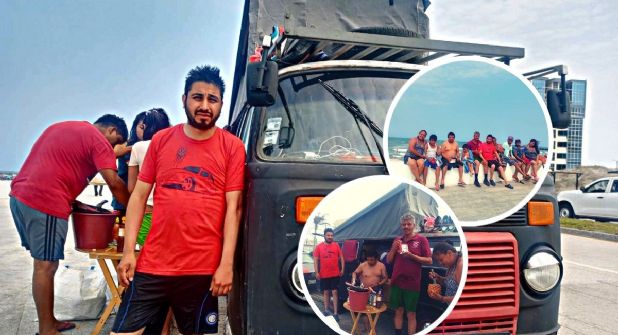 Mientras que afuera, sobre la banqueta del bulevar Adolfo Ruíz Cortines, de Boca del Río, su familia colocó una pequeña mesa desplegable para comer y preparar sus botanas a la orilla de la playa, sin tener que gastar demás.