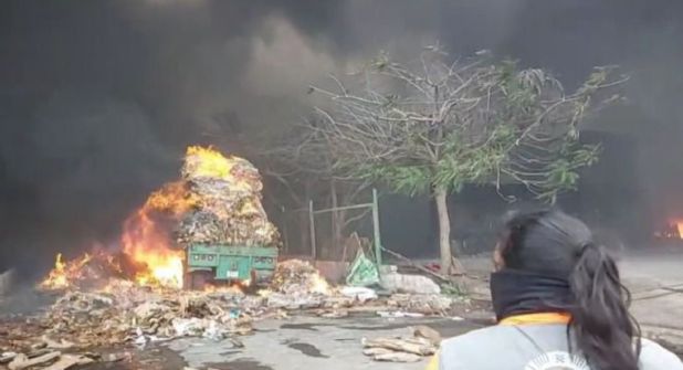 Cartón, láminas, papel, plástico y otros objetos de reciclaje fueron alcanzados por las llamas, lo que favoreció la propagación del fuego que incluso alcanzó el remolque de un camión que transportaba rollos de cartón y serían ingresados a la recicladora.
