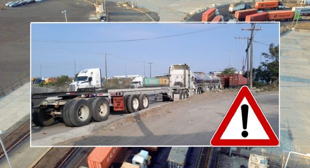 VERACRUZ, VER.- El bloqueo de traileros en el acceso al puerto de Veracruz del libramiento portuario, conocido como kilómetro 13.5, suma más de 24 horas. La mañana de este miércoles 17 de mayo del 2023, continúa la larga fila de camiones de carga y el bloqueo total en esta vialidad.