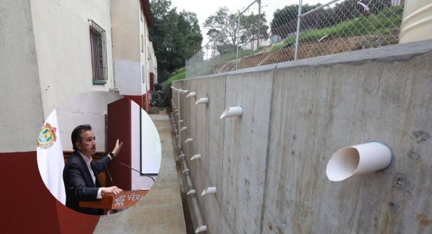 El gobernador explicó que la barrera antideslaves está compuesta por 13 de muros de contención, instalados en la parte trasera de varios edificios de este fraccionamiento, en donde en años recientes se registraron derrumbes que pusieron en riesgo las estructuras.
