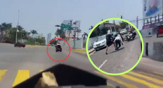 El segundo video se corta en este punto; sin embargo, se presume que la agresión ocurrió instantes después que el Tránsito le tapó el paso al infractor, quien se bajó de su motocicleta y golpeó al agente.