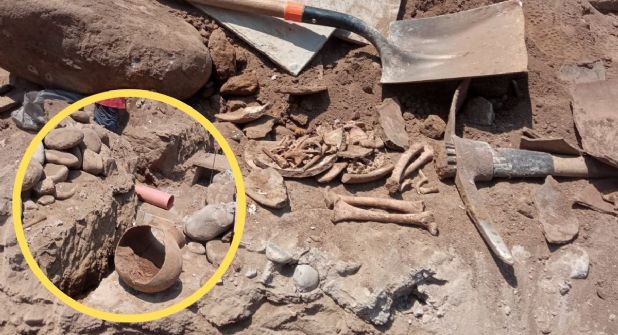 Osvaldo explica que el hallazgo probablemente ser un “entierro secundario”, este consiste en el resguardo de huesos, ya sin tejidos, que se guardaban en ollas o apaxtles, para ser usados como ofrenda, “principalmente cuando se iniciaba la construcción de un edificio”, detalla el especialista.