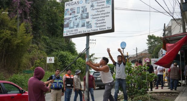 De acuerdo con lo informado por el alcalde de Emiliano Zapata, Erick Ruiz Hernández, esta acción se llevó a cabo en la calle Dr. Rafael Lucio de la zona de comercios en Las Trancas, del lado de este municipio, donde el personal retiró letreros y estructuras metálicas de las banquetas.