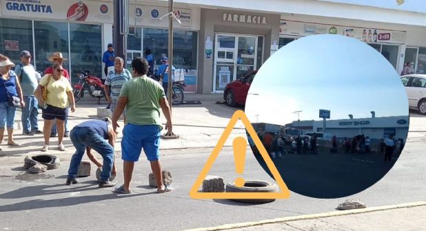 Fue cerca de las 17:00 horas de este martes cuando decenas de habitantes comenzaron a cerrar uno de los carriles de la carretera, utilizando palos y piedras, en frente de una plaza comercial ubicada justo frente al puente vehicular de Las Amapolas.