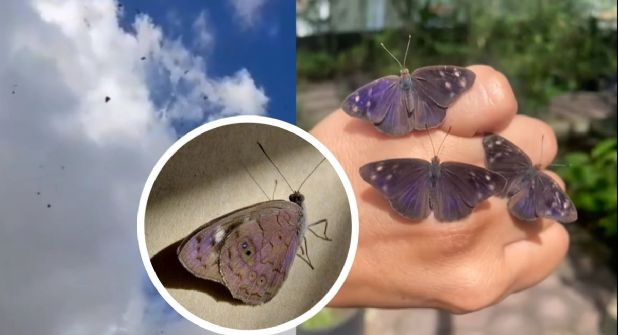 XALAPA, VER.- Mariposas oscuras han inundado las calles de Xalapa en esta última semana de julio. En redes sociales se compartieron videos del paso migratorio de las mariposas que cautivan a quienes transitan por la ciudad.