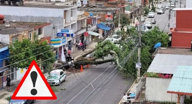 XALAPA, VER.- Un árbol de gran tamaño se cayó en la avenida Mártires 28 de Agosto de Xalapa, lo cual obstruye la vialidad por completo en lo que continúan las labores para retirarlo.