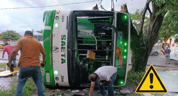 El camión del transporte público de la ruta Saeta-Tejería, marcado con el número económico 384, avanzó varios metros dando vueltas, hasta impactar con un árbol que detuvo su trayectoria. En ese momento, personas que circulaban por la zona y vecinos se acercaron para ayudar a los pasajeros a bajar de la unidad.