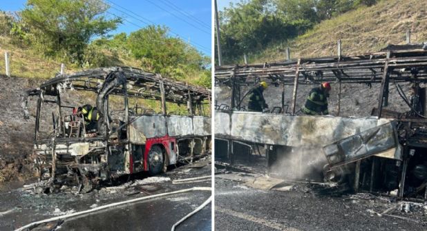De acuerdo con la información proporcionada por los pasajeros, el autobús de la empresa Expreso Plus viajaba procedente de Ciudad Madero y tenía como destino el estado de Chiapas; sin embargo, quedaron a la deriva porque el autobús quedó completamente quemado.