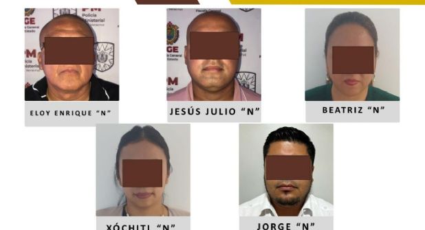Los detenidos son Jorge N., quien se desempeña como fiscal séptimo especializado en investigación de Delitos de Violencia contra la Familia, Mujeres, Niñas y Niños y Trata de Personas de la Unidad Integral de Veracruz; Beatriz N.; perito en Trabajo Social; Xóchitl N., perito psicológa; así como Eloy Enrique N, coordinador de detectives; y Jesús Julio N., policía ministerial.