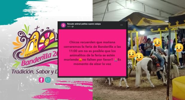 En esa publicación hicieron un llamado urgente a las autoridades municipales de Banderilla para que atendieran la petición y dejaran de permitir el uso de carruseles de ponis en este tipo de eventos, pues señalaron que todos los días desde las 11:00 horas hasta las 23:00 horas, los animales los tienen trabajando sin poder descansar.