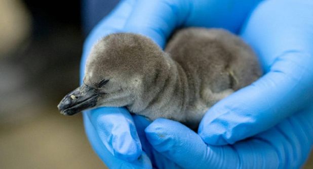 En las fotos se observa el momento en que el huevo del pingüino se rompe y de este sale la pequeña ave acuática. Se aprecia que recién nacido, este pequeño animal presenta un plumaje muy fino de color gris, que aparenta pelo con una textura aterciopelada, las cuales cuando crezca pasarán a ser plumas blancas y negras, con toques de color amarillo o naranja.