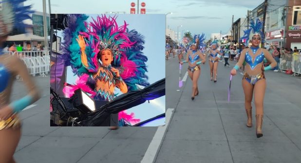Después comenzaron a desfilar los carros alegóricos, el primero fue el de Yuri, quien portó un atuendo con plumajes de múltiples colores y cantó sus éxitos musicales que corearon los asistentes.