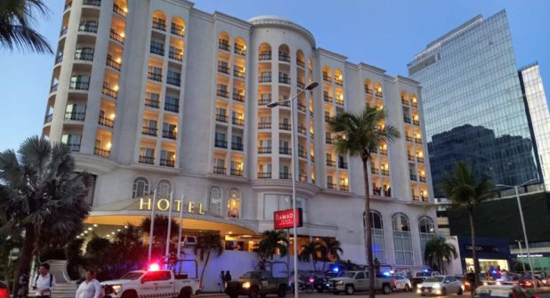 VERACRUZ, VER.- Un importante operativo policiaco llamó la atención de automovilistas y transeúntes en las inmediaciones del centro comercial Plaza Américas, luego de que se reportó al 911 un intento de robo en una exposición de joyería que se realizaba en uno de los salones del hotel Ramada, ubicado en la esquina de las avenidas Las Américas y Marigalante.