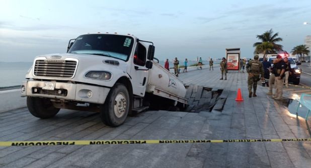 El socavón formado en el bulevar Ávila Camacho es a la altura del hotel Camino Real, del lado cercano a la Playa Pelícano. Elementos de emergencia ya están en el lugar y se requirió el cierre parcial al peatón para evitar que caminen en ese tramo del camino.