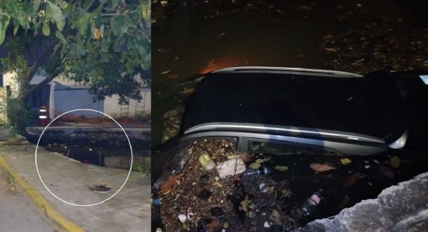VERACRUZ, VER. - Durante la madrugada de este lunes 16 de septiembre, día festivo por conmemoración al 214 aniversario de la Independencia de México, se registró el accidente de una camioneta Chevrolet color gris oscura que terminó en el canal de aguas negras del fraccionamiento Laguna Real de Veracruz.