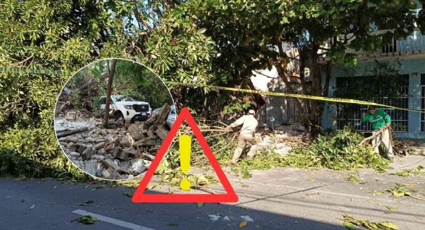 Debido a que el árbol se encontraba al interior de una casa antigua abandonada, el caer derribó la barda y parte de la estructura, por lo que además de ramas también salieron proyectadas piedras y ladrillos.