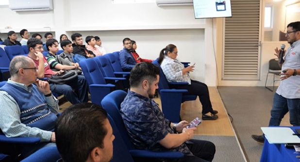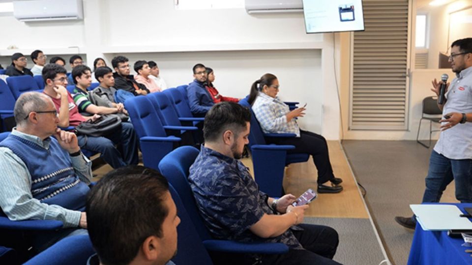 Pidió a las y los jóvenes presentes en el auditorio de la FIME que a través de respuestas a sus preguntas fueran conduciendo la charla, por lo que se interactuó desde el inicio, explicando cuáles son las fuentes de energía y cómo esta puede ser almacenada hasta llegar a la fotovoltaica –emitida por el sol– y cómo se puede guardar y utilizar.