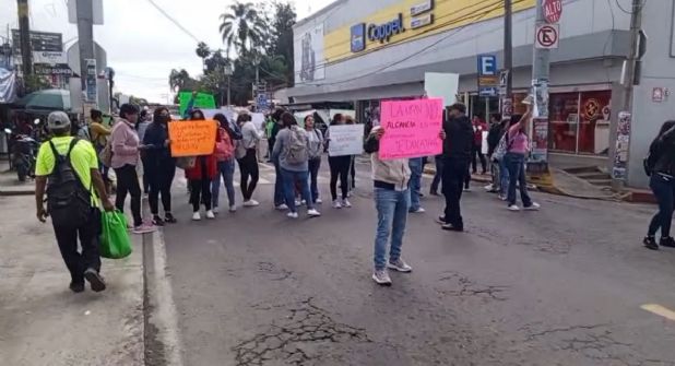 XALAPA, VER.- Estudiantes de la Universidad Popular Autónoma de Veracruz (UPAV) se manifestaron este viernes en la zona de Las Trancas, en la zona de Xalapa- Emiliano Zapata, para denunciar la presunta desaparición del dinero correspondiente a los pagos de reinscripción y cuotas semestrales.