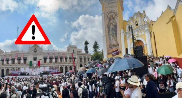 La calle Enríquez, principal vía de acceso a la Catedral Metropolitana de Xalapa, se encuentra bloqueada debido al informe de labores que rinde la gobernadora de Veracruz, Rocío Nahle García, desde el mediodía de este domingo 30 de noviembre.