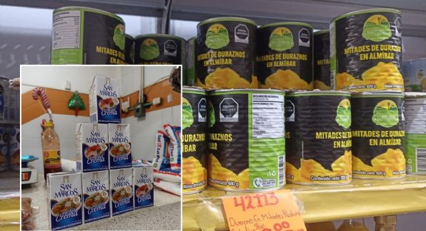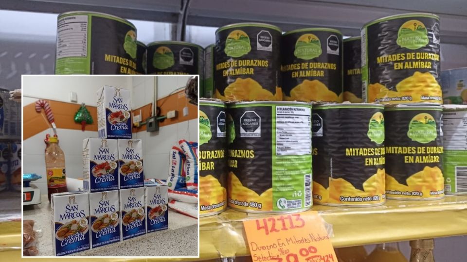- Lata de duraznos en almíbar de 1 kilo 800 gramos en un precio aproximado de 140.00 pesos.