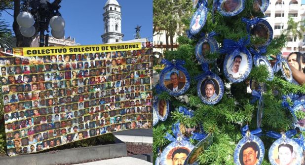 VERACRUZ, VER.- En el Zócalo de Veracruz y al costado del Palacio Municipal, integrantes del Colectivo Solecito de Veracruz realizaron el tradicional pase de lista de personas desaparecidas junto al Árbol del Dolor y la Memoria este 24 de diciembre.