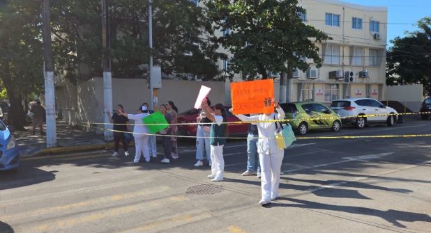 VERACRUZ, VER.- Este miércoles 24 de diciembre, enfermeras y enfermeros del Hospital Regional de Alta Especialidad de Veracruz se manifestaron en la avenida 20 de noviembre para exigir el cumplimiento de sus prestaciones de ley, entre ellos, el bono de Navidad que no ha sido entregado a todos los trabajadores.