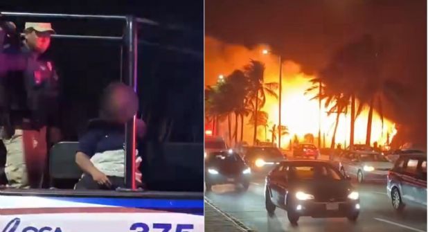 A las 7:30 de la noche, testigos aseguraron a las autoridades que la vieron prender fuego a una palapa localizada en la playa El Morro, a un costado del bulevar Miguel Alemán y a unos metros del bulevar Vicente Fox. Este incendio alarmó a la población y turistas debido a que el fuego era visto desde varios kilómetros.