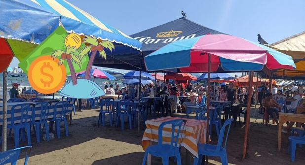 "Prefieren pagar una renta de 200 - 250 pesos que consumir. Y nosotros queremos que consuman", menciona con preocupación. En algunas de las mesas que están frente al mar, y otras que están a dos o tres metros de distancia, se alcanzan a ver cajas de cadenas de comida como Little Caesars y de Kentucky.
