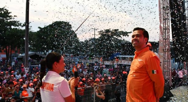 VERACRUZ, VER.- En un ambiente de fiesta, música, y con el respaldo de habitantes de distintas congregaciones de la zona rural de la ciudad, Belem Exsome, candidata por Movimiento Ciudadano a la presidencia municipal de Veracruz, celebró este viernes un súper evento masivo acompañada por el coordinador nacional naranja, Jorge Maynez, y con el súper espectáculo del Rey del Baile, Nelson Kanzela, además de la presencia de Raúl Zarrabal, candidato de MC a la alcaldía de Boca del Río.