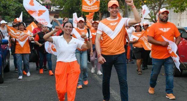 VERACRUZ, VER.- Al caminar por calles de la colonia Rio Medio, Belem Exsome, candidata por Movimiento Ciudadano a la presidencia municipal de Veracruz, junto con Dante Delgado Morales, constataron el creciente apoyo que la ciudadanía veracruzana está brindando a la Fuerza Naranja.