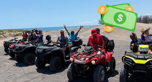 También renta la cuatrimoto más sencilla en 600 pesos, por el mismo tiempo e inlucluyendo todo lo anterior.