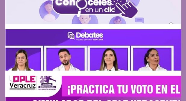 En cuanto al Proceso Electoral Local Extraordinario 2024-2025 para la elección de personas juzgadoras, el OPLE Veracruz cuenta con el Micrositio “Conóceles” en https://conocelesjudicial2025.oplever.org.mx/, para difundir la identidad, perfil e información curricular de las personas candidatas a cargos de elección del Poder Judicial del Estado. El objetivo de esta herramienta es facilitar el acceso a la información y su consulta, lo que permitirá a la población contar con elementos para la emisión de un voto informado e incentivar su participación en el proceso de elección.
