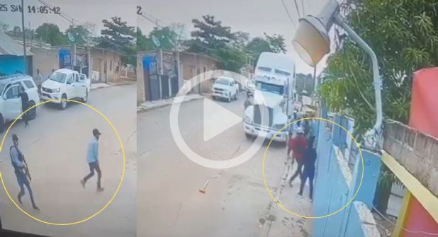 En el video se observa cómo al momento en que, mientras unos cruzan el portón, otros disparan contra la fachada, lo que es aprovechado por al menos tres sujetos para entrar a la casa.
