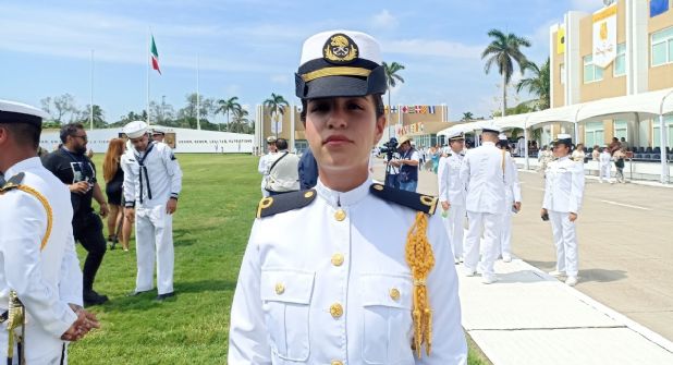 Entre 243 hombres, la ahora guardiamarina reconoce que en la Heroica Escuela Naval Militar de Antón Lizardo nunca existió la distinción. Sin embargo, se dice orgullosa de ser la primera mujer de su familia en estudiar aquí.