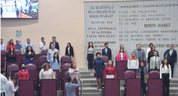 La Mesa Directiva, integrada por las diputadas Tanya Carola Viveros Cházaro y Tania María Cruz Mejía y por el diputado Felipe Pineda Barradas, presidenta, vicepresidenta y secretario, respectivamente, dio cuenta sobre el Acuerdo de la Junta de Coordinación Política (Jucopo) respecto a la persona representante del Poder Legislativo ante el citado órgano, para un periodo de seis años improrrogables.