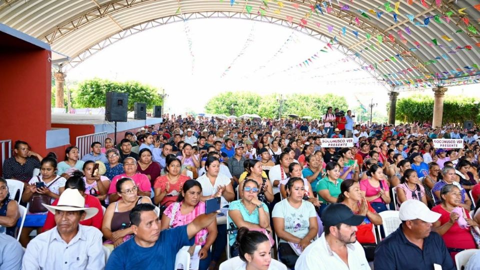 XALAPA, VER.- El presidente de la Junta de Coordinación Política de la LXVII Legislatura del estado, diputado Esteban Bautista Hernández, y la presidenta de la Mesa Directiva, diputada Naomi Edith Gómez Santos, atestiguaron la entrega del programa Apoyo a la Palabra-Plan México que realizó la gobernadora de Veracruz, Rocío Nahle García, este día en la cabecera municipal de Tatahuicapan de Juárez.