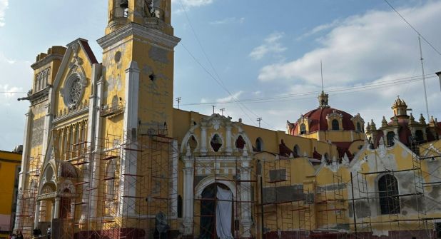 Los trabajos no se anunciaron, solo se cerró la calle Revolución cuando una cuadrilla de trabajadores empezó con la rehabilitación de la fachada de la iglesia con más de 380 años.