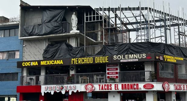 XALAPA, VER.- La instalación de una nueva estructura en el tercer piso del mercado El Dique, corredor gastronómico en la zona de Los Lagos, ha generado incertidumbre entre los vecinos de la calle Dique y González Bocanegra, ante la posibilidad de la apertura de un bar.