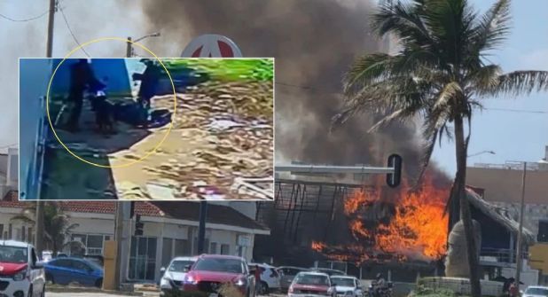La grabación muestra el momento en que uno de los individuos desciende parcialmente de la motocicleta y lanza en dos ocasiones artefactos incendiarios hacia la palapa del restaurante. Dichos objetos, presuntamente de fabricación casera, provocaron de inmediato la propagación del fuego al entrar en contacto con materiales altamente inflamables, lo que aceleró el incendio.