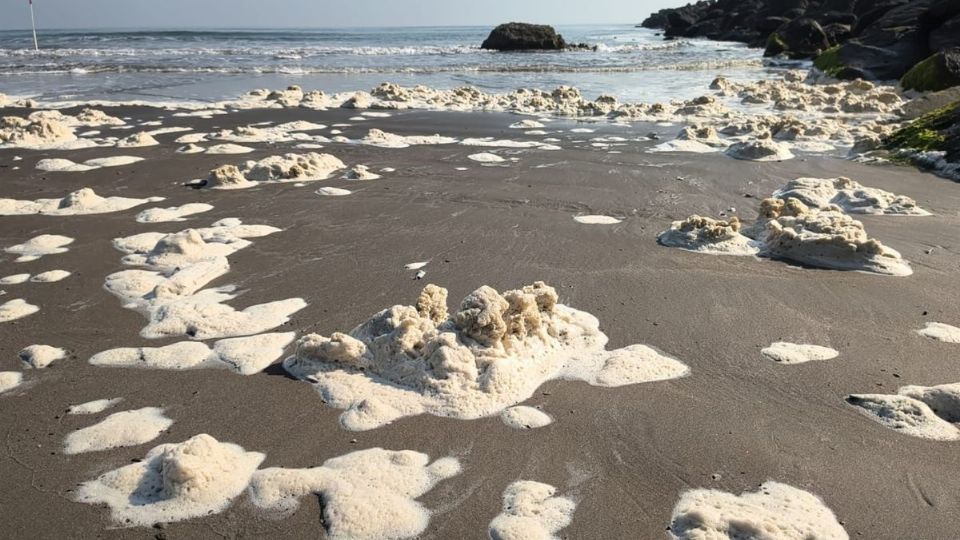 BOCA DEL RÍO, VER.- Bañistas y deportistas de Boca del Río fueron sorprendidos la mañana de este viernes 27 de febrero del 2026, al percatarse que la última sección de la Playa Santa Ana, en la zona del Foro Boca, se encontraba cubierta de espuma.
