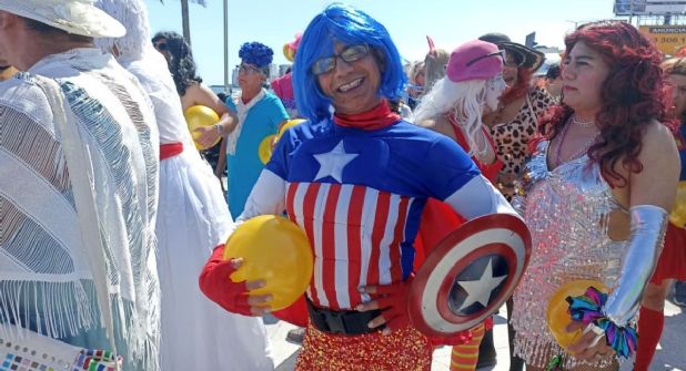 Vestido con una peluca color azul hasta los hombros y con el traje y escudo de "Capitana América" que planeó desde el año 2025, dice que está orgulloso de pertenecer al juego de Solteras vs Casadas que tiene 42 años de historia en el puerto de Veracruz.