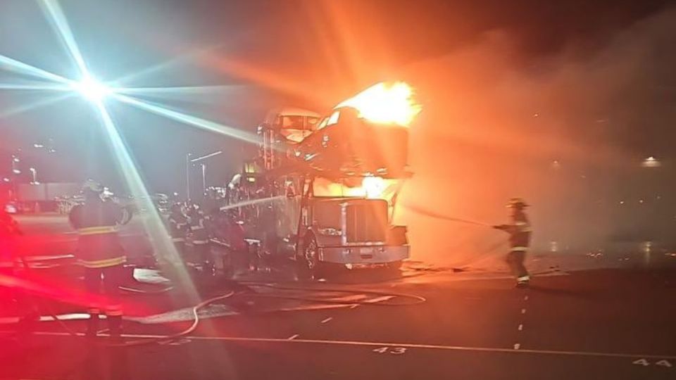 El fuego alcanzó a una de las unidades nuevas que era trasladada en la parte superior de un tractocamión, lo que generó la activación inmediata de los protocolos de emergencia dentro del puerto.